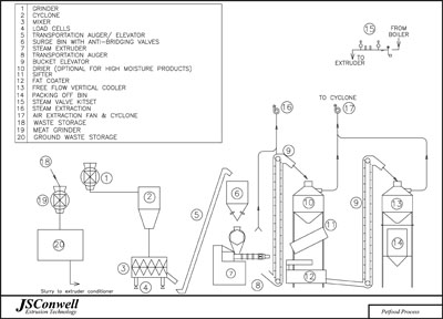 As with most JSC extruders petfood machines are fitted with a steam preconditioner. This aids in reducing manufacturing costs while improving product quality and increasing throughput. The Preconditioner can also be used to do some of the premixing by adding slurries, oil or other liquid ingredients.